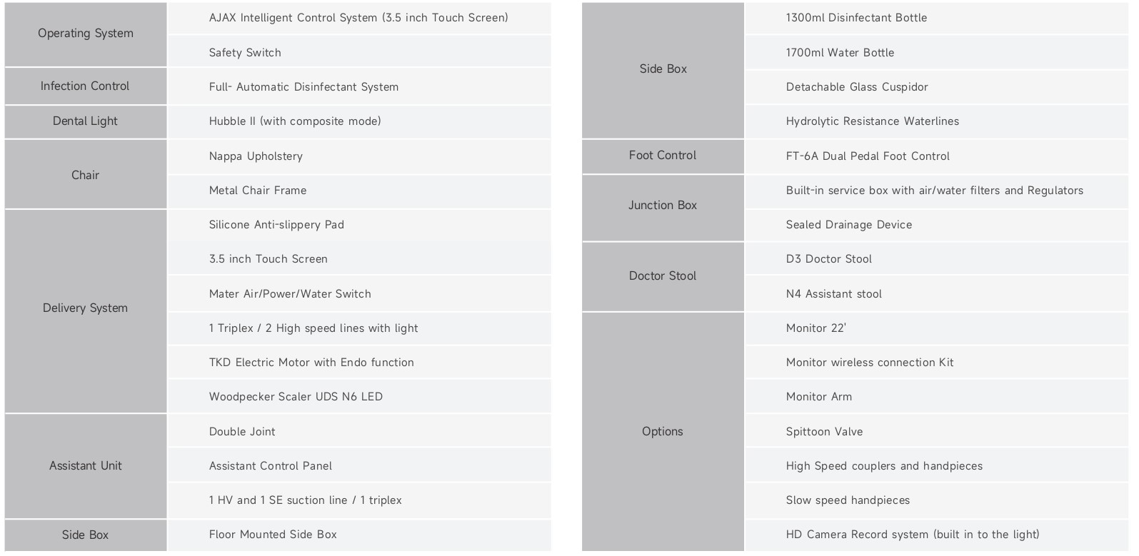 - Ergonomic design, dentist can never be more closer to the patients easily